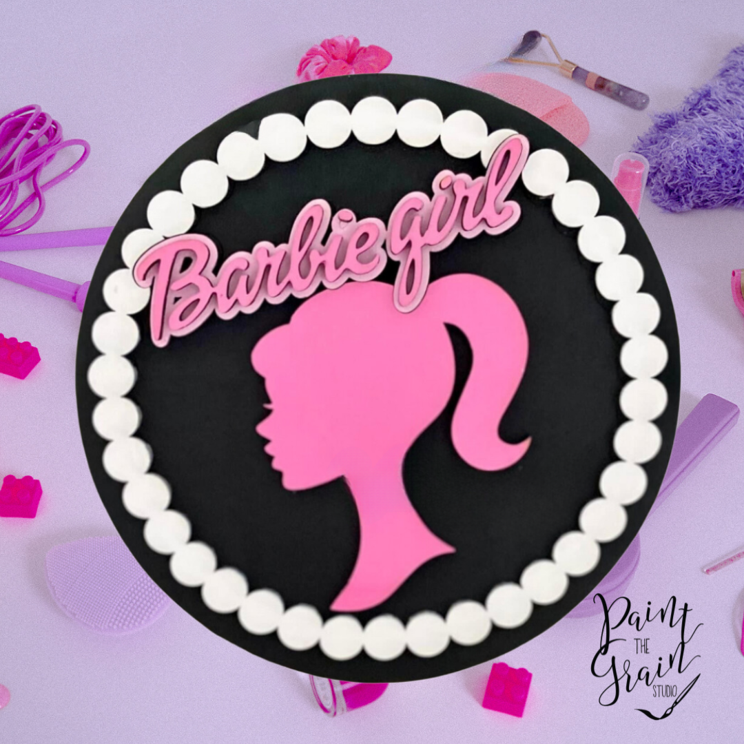 Are you a barbie girl? This sign measures 10 inches round and now available! Choose all your colors at the event.